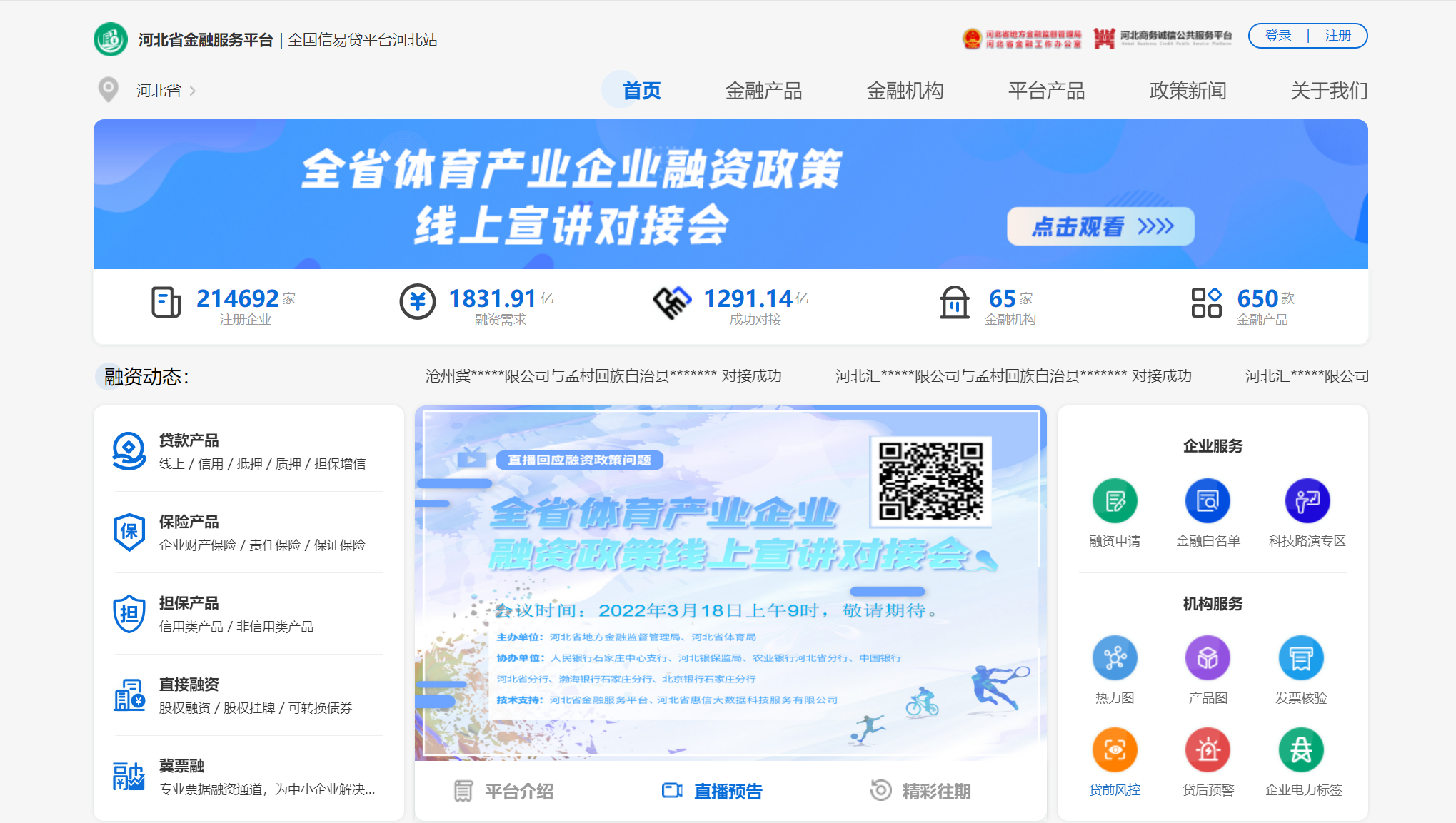 ?為深入落實(shí)黨中央、國(guó)務(wù)院和省委、省政府決策部署,幫助企業(yè)熟悉、用好相關(guān)融資政策,推動(dòng)金融支持全省體育產(chǎn)業(yè)發(fā)展取得實(shí)效,2022年3月18日,河北省地方金融監(jiān)督管理局聯(lián)合河北省體育局共同舉辦全省體育產(chǎn)業(yè)企業(yè)融資政策線上宣講對(duì)接會(huì)。