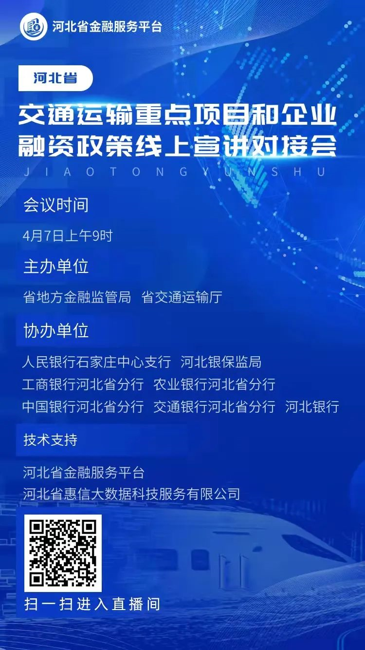 河北省交通運(yùn)輸重點(diǎn)項(xiàng)目和企業(yè)融資政策線上宣講對(duì)接會(huì)于4月7日召開(kāi)